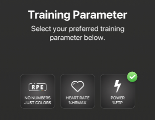 8. Da vi fortsat kører med Farvezoner og Watt i Impuls, skal du vælge Power %FTP på denne skærm