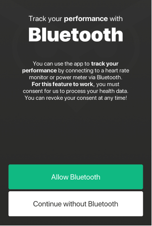 4. Vigtigt at du tillader Bluetooth, da MOWL ellers ikke kan "snakke" med din cykel og vise dig hvilken Zone/RPM du kører.